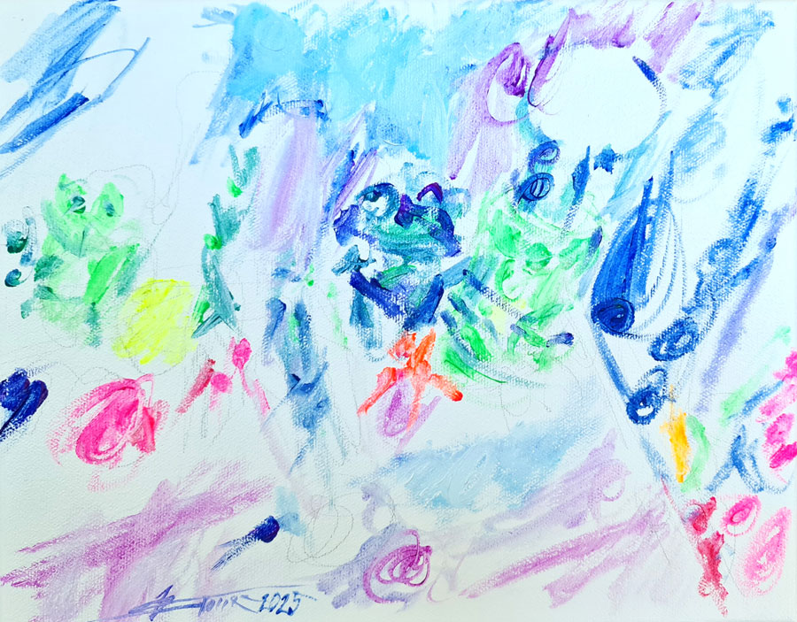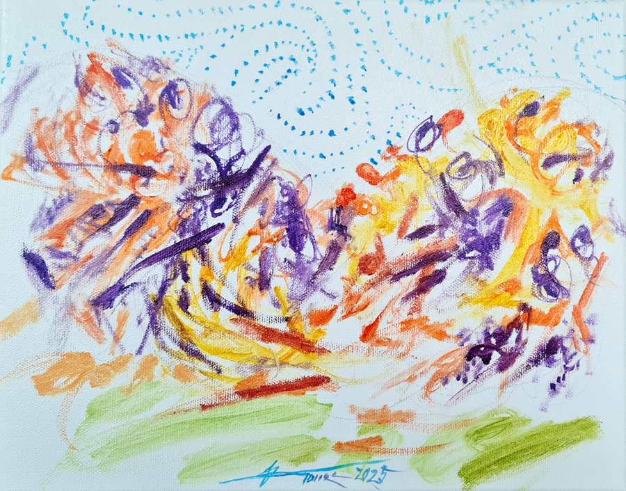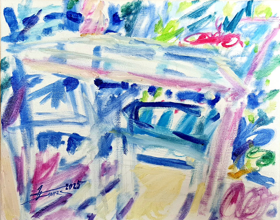 Tehnika: alkid neon+olje na platnu (čez oljno imprimaturo)