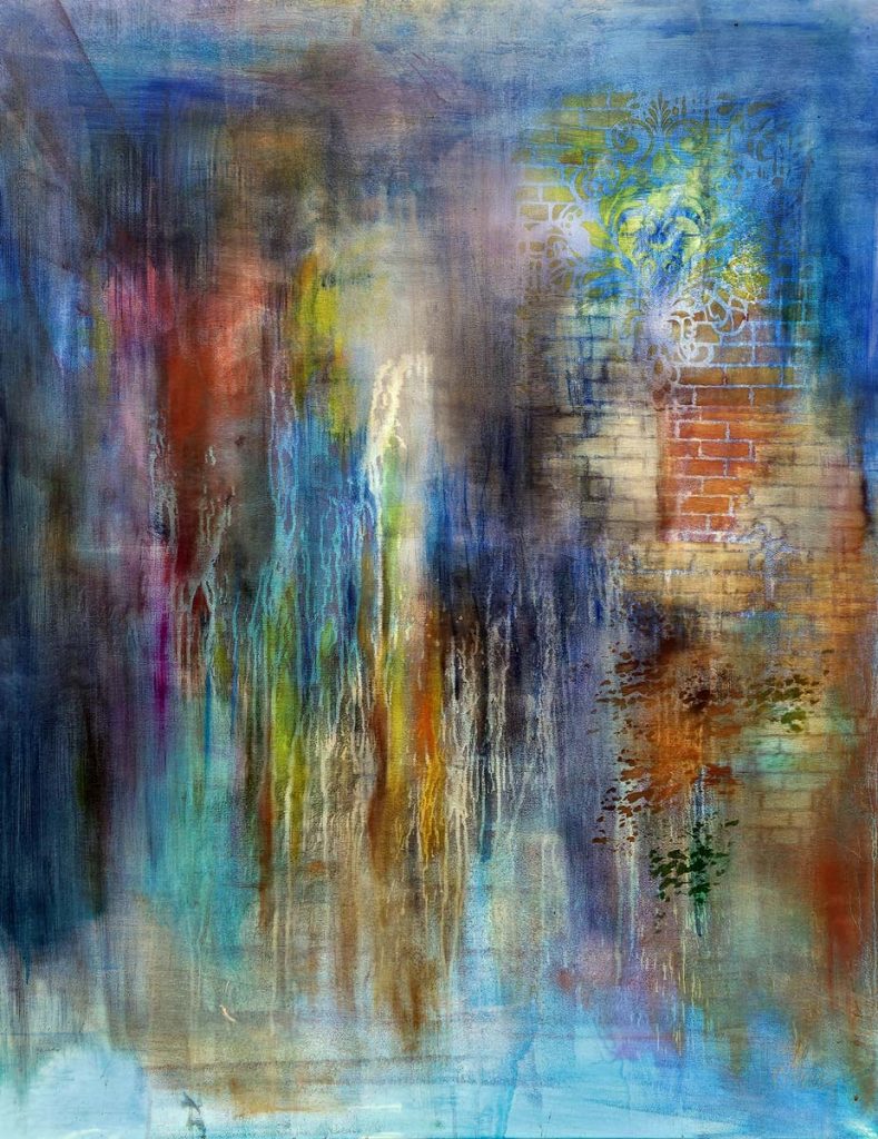 Alma Lovrenčič: Serija-Pelji me na luno, slika 19 – Po nevihti, 2023, mešana tehnika na platnu, 114 x 146 cm