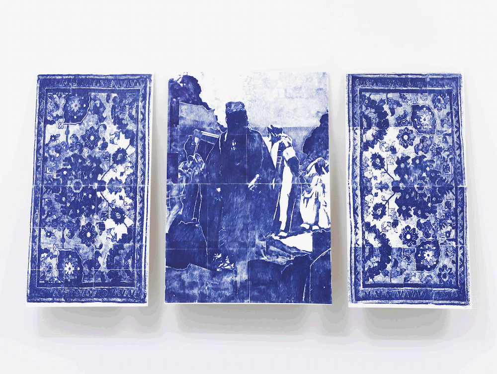 Annazah (The Last Sector), 2024, transfer risba na papirju z indigo papirjem 120 × 200 cm, foto: Zupanov (arhiv RAVNIKAR)
