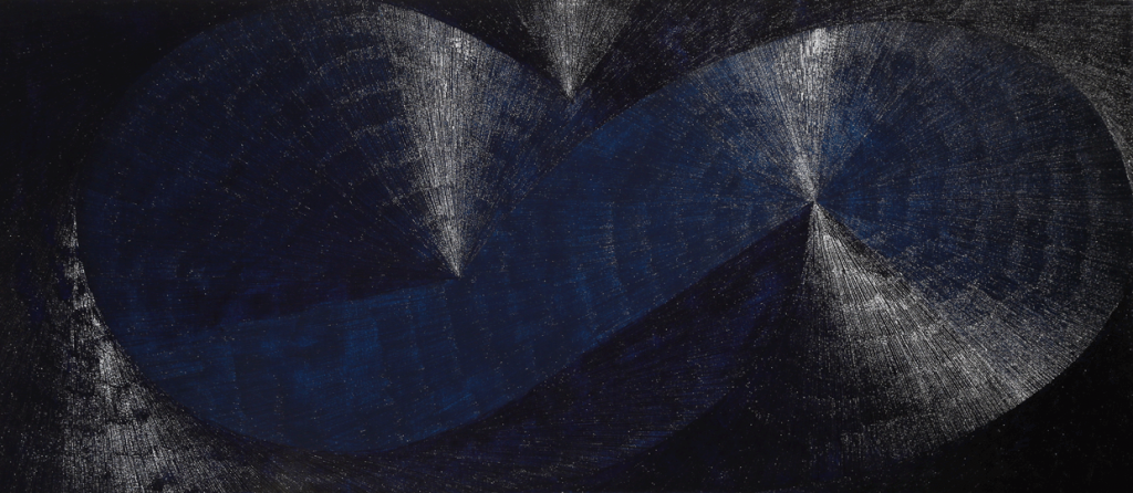 Temno modra slika, 2025, olje na platnu, 80 × 180 cm, foto: arhiv avtorja