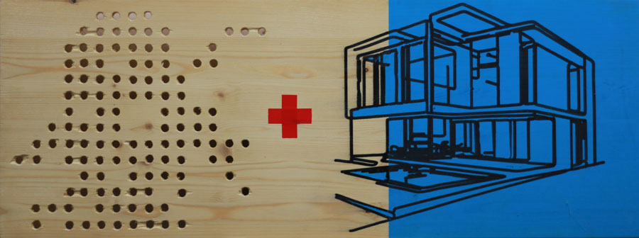 Tehnika: Akril na lesu, obdelava lesa, risanje z robotom